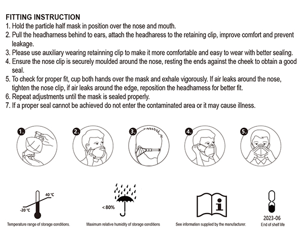 执行标准:GB2626-2006 / EN149:2001+A1:2009 FFP2 NR
